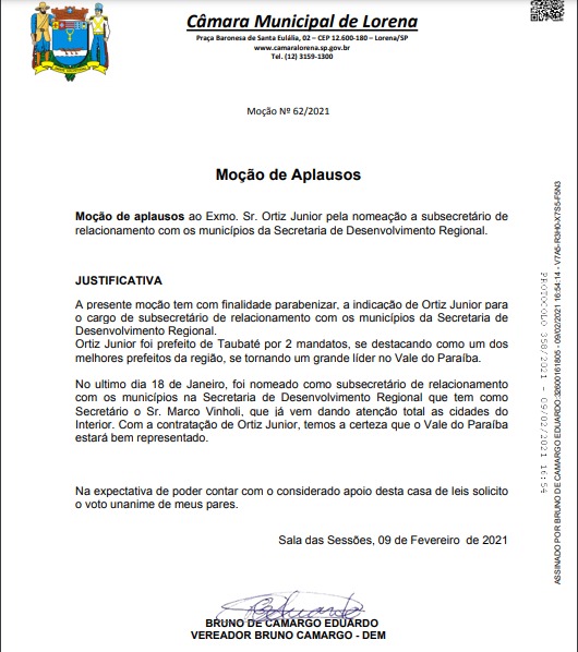 Em Lorena recebi a moção de aplausos por representar o Vale na Subsecretaria de Relacionamento com Municípios.