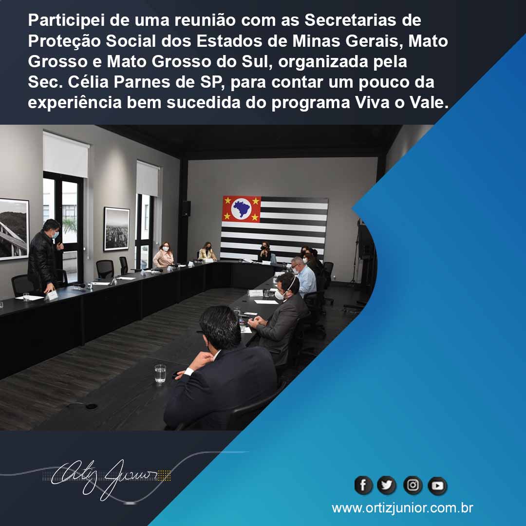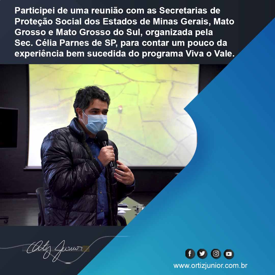 Participei de uma reunião com as Secretarias de Proteção Social dos Estados de Minas Gerais, Mato Grosso e Mato Grosso do Sul, organizada pela Sec. Célia Parnes de SP, para contar um pouco da experiência bem sucedida do programa Viva o Vale.
